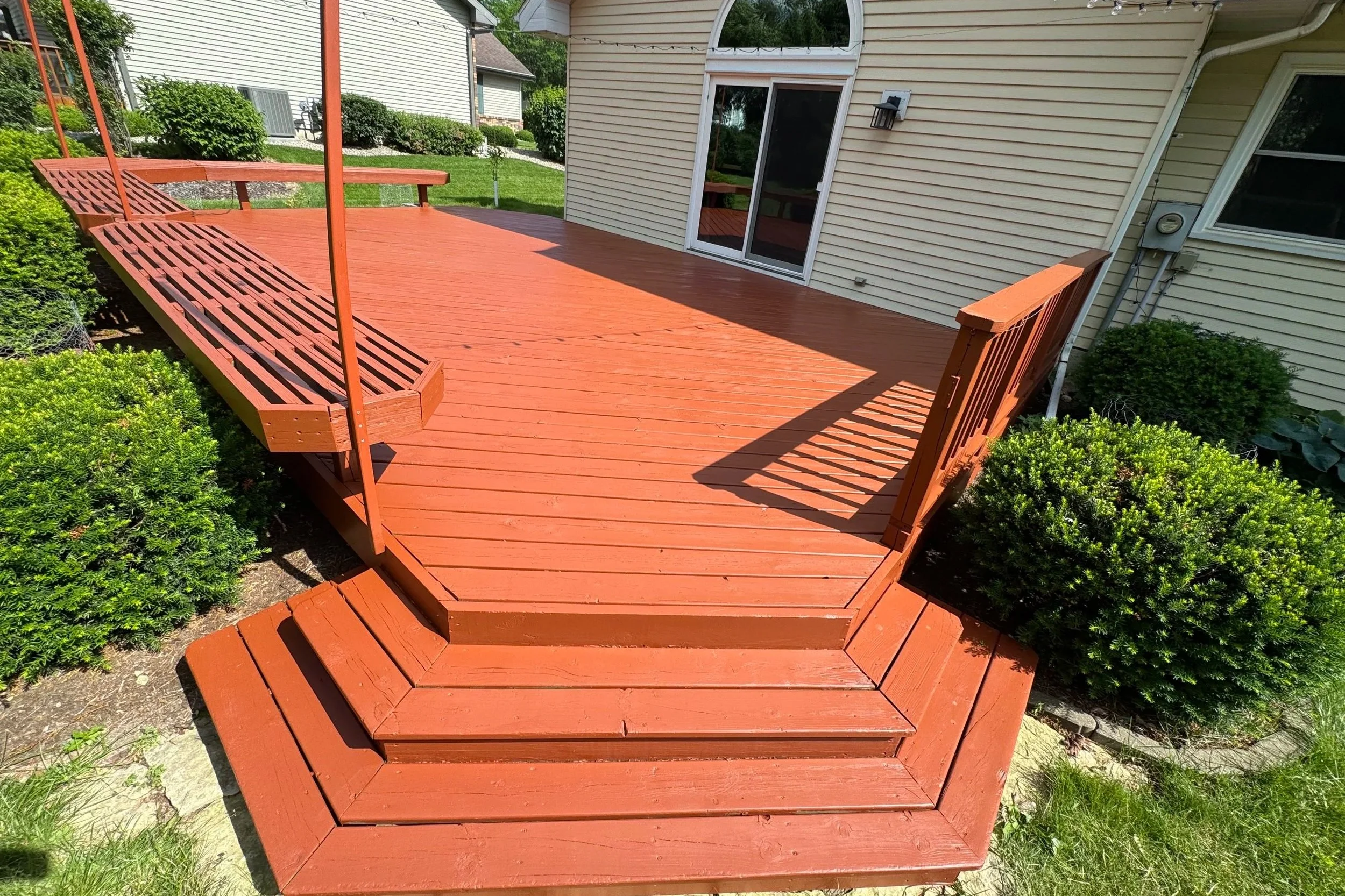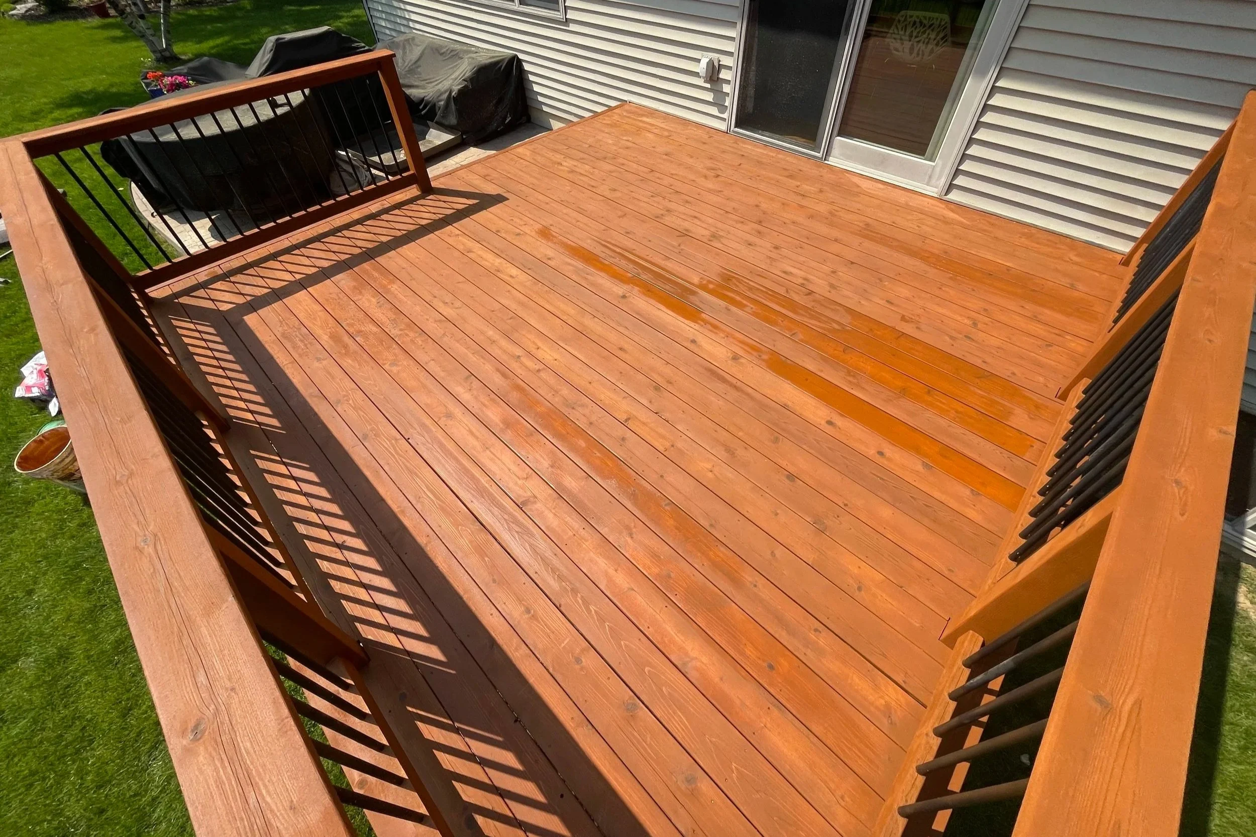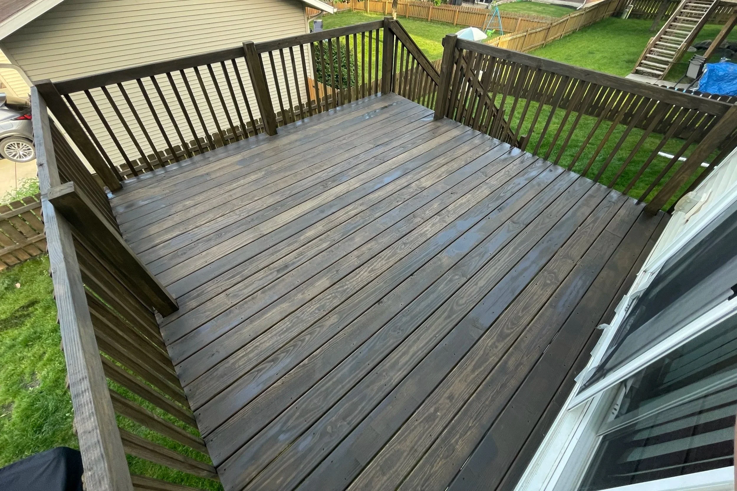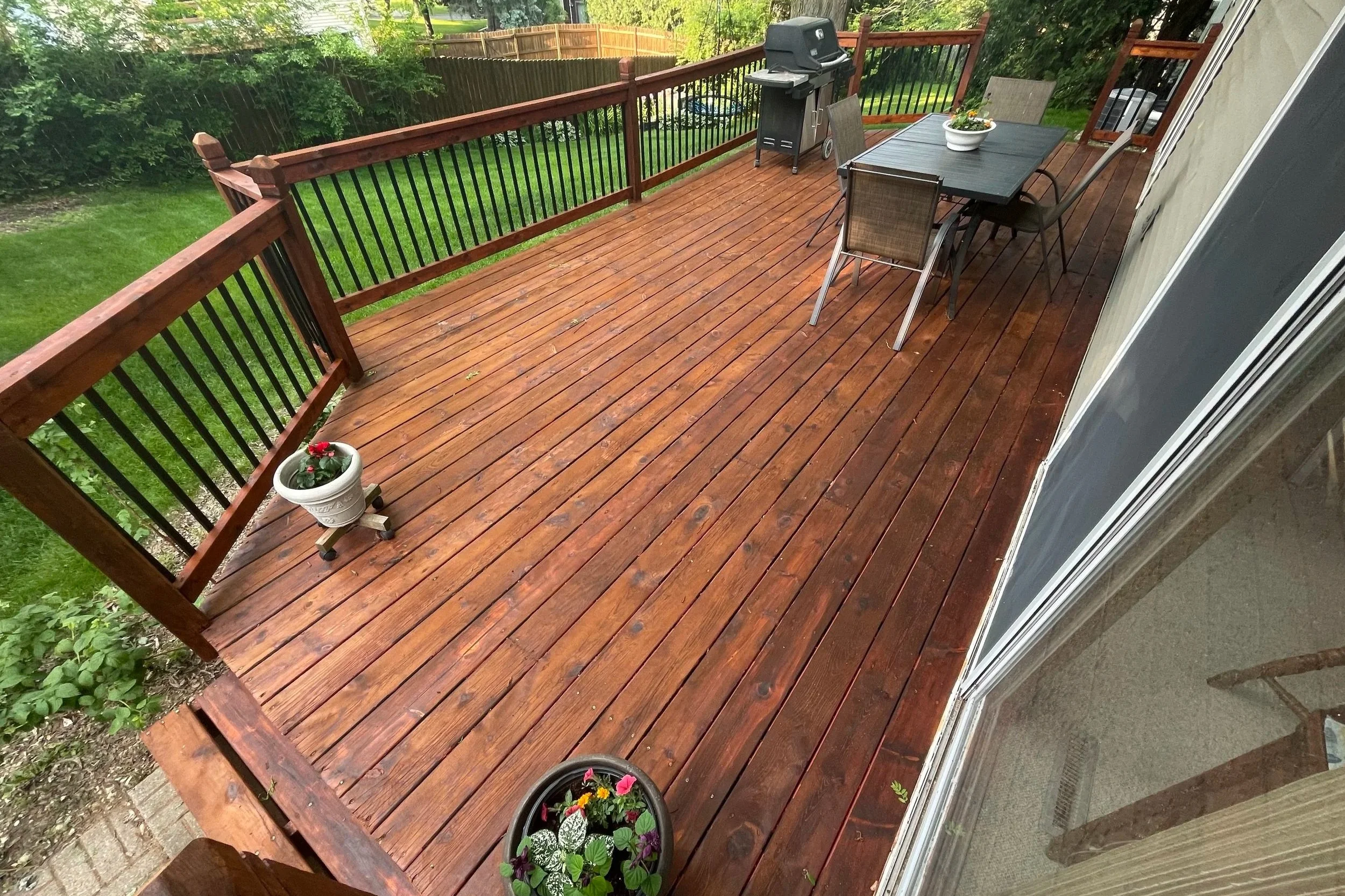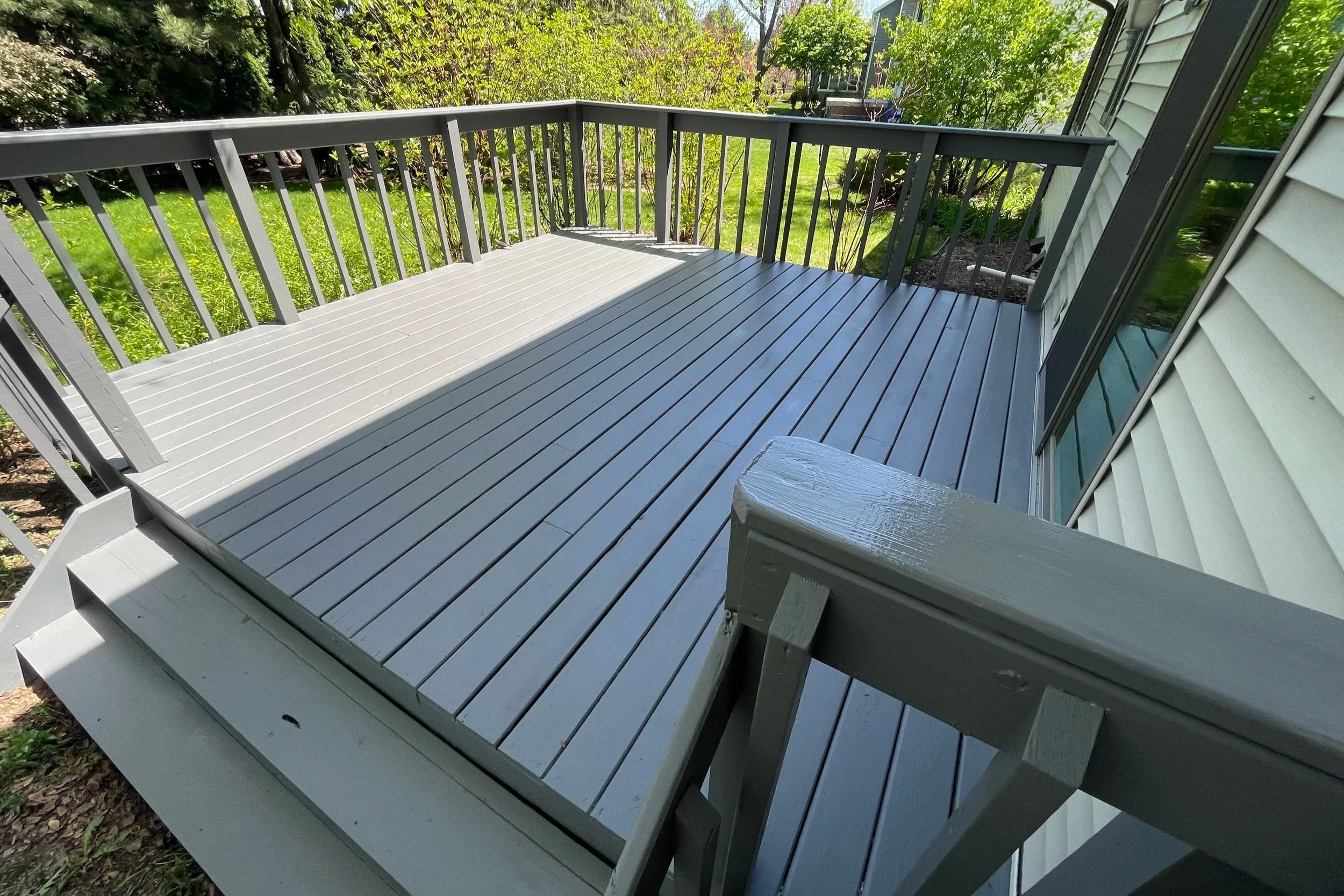 Modern Black Railings & Palomino Stain Stripped, Railings Rebuilt & Stained in Mahogany New Deck Staining — Pecan Finish Deck Stripping & Auburn Finish New Deck Staining — Barnwood Finish Washed, Stripped, and Finished in Walnut Oil Based Stripped Off W/ Palomino Stain New Deck Staining — Sequoia Finish New Deck Staining — Chocolate New Deck Staining – Chestnut Finish Full Deck Repaint in Bright White Deck Stripped & Palomino Stain Applied Deck Restoration in Pecan Finish Deck Restoration in Sable Finish Paint Stripped & Refinished in Cape Cod Grey Deck Restoration in Chestnut Finish Auburn Deck & Cedar Fence Combo Deck & Pergola In Palomino Deck Stripping & Auburn Finish Faded Deck & Palomino Stain Deck Repainted in Mercury Gray White Paint Stripped & Slate Grey Stain Solid Deck Staining — Russet Brown Stripping Peeling Paint Off Deck Solid Red Deck Stain New Deck Staining – Palomino Finish Water Based Stain Deck Stripping Front Porch Restoration – Wallnut Oil-Based Staing