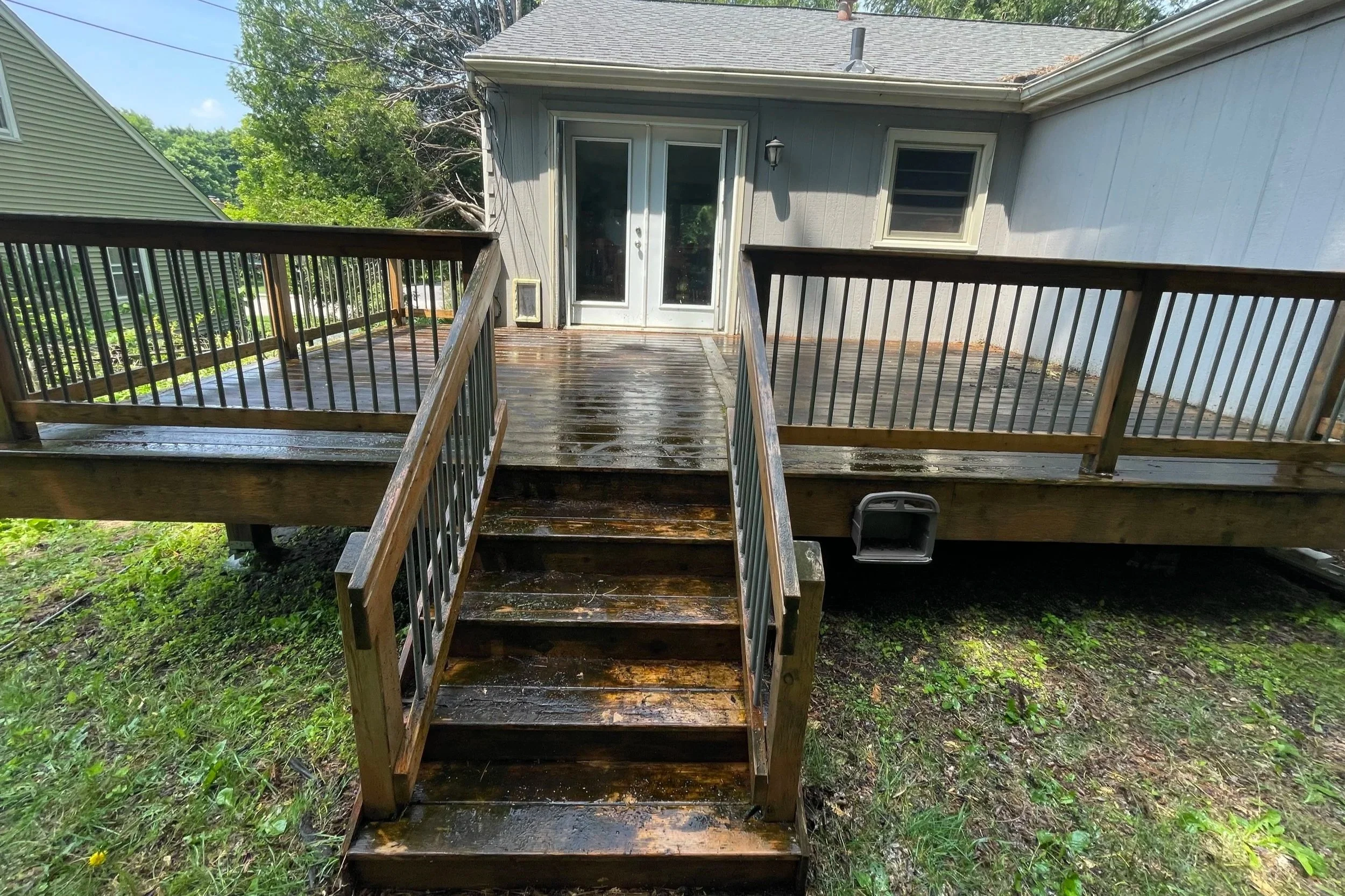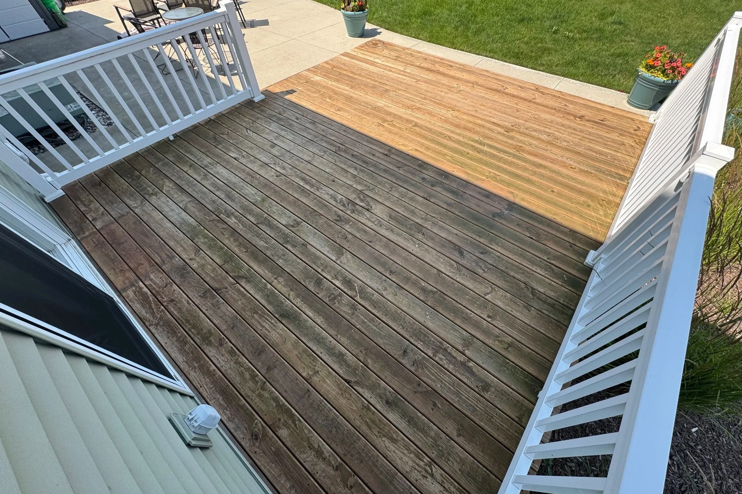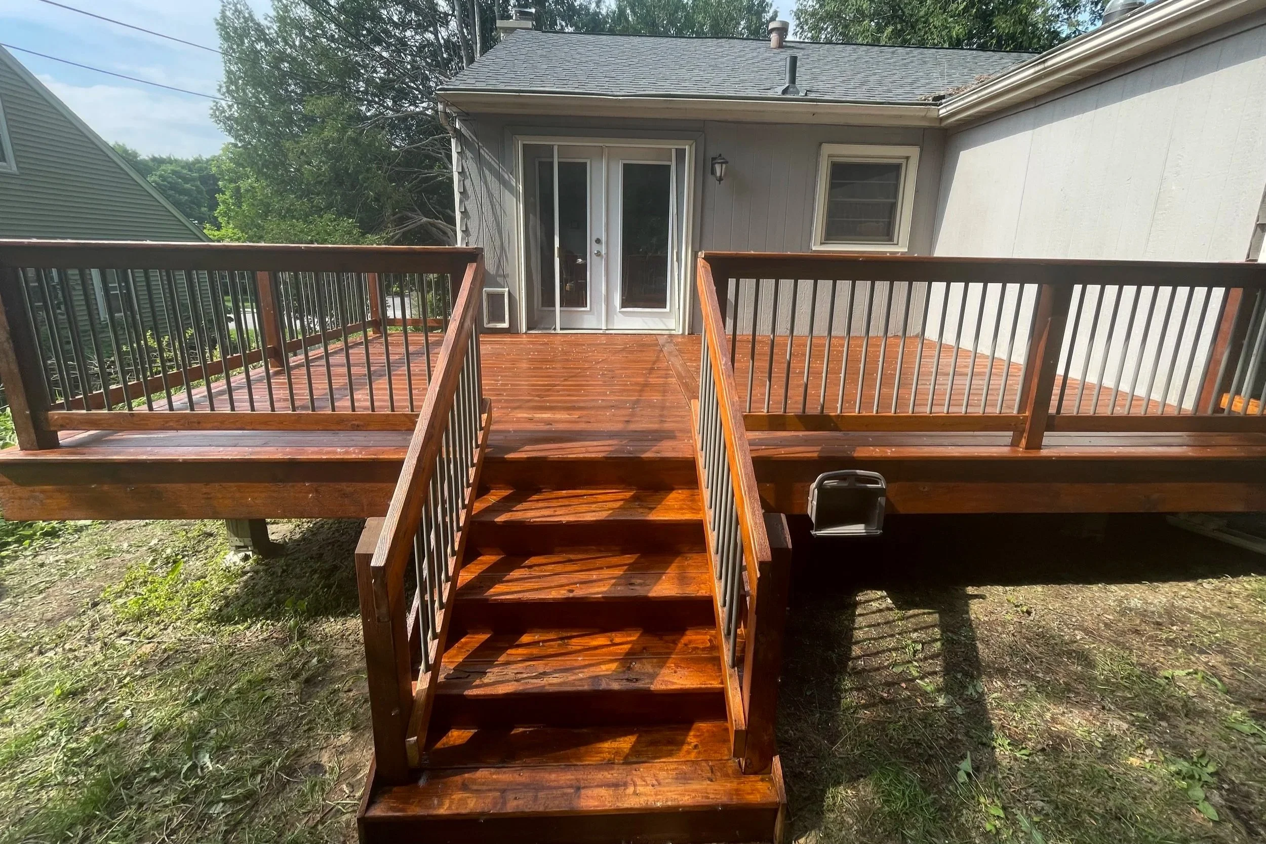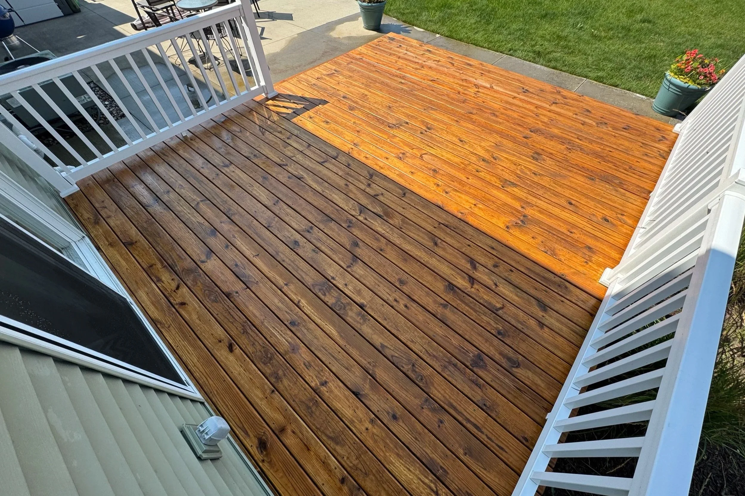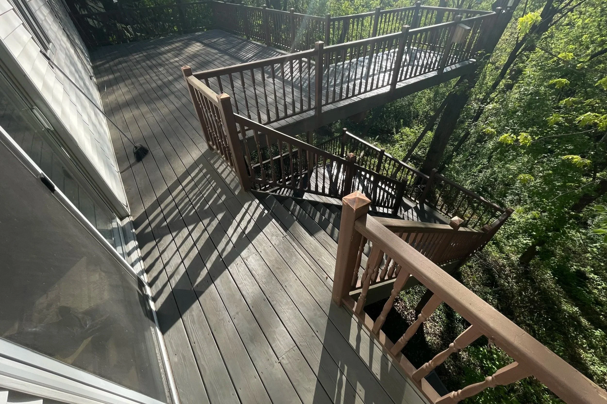 Modern Black Railings & Palomino Stain Stripped, Railings Rebuilt & Stained in Mahogany New Deck Staining — Pecan Finish Deck Stripping & Auburn Finish New Deck Staining — Barnwood Finish Washed, Stripped, and Finished in Walnut Oil Based Stripped Off W/ Palomino Stain New Deck Staining — Sequoia Finish New Deck Staining — Chocolate New Deck Staining – Chestnut Finish Full Deck Repaint in Bright White Deck Stripped & Palomino Stain Applied Deck Restoration in Pecan Finish Deck Restoration in Sable Finish Paint Stripped & Refinished in Cape Cod Grey Deck Restoration in Chestnut Finish Auburn Deck & Cedar Fence Combo Deck & Pergola In Palomino Deck Stripping & Auburn Finish Faded Deck & Palomino Stain Deck Repainted in Mercury Gray White Paint Stripped & Slate Grey Stain Solid Deck Staining — Russet Brown Stripping Peeling Paint Off Deck Solid Red Deck Stain New Deck Staining – Palomino Finish Water Based Stain Deck Stripping Front Porch Restoration – Wallnut Oil-Based Staing