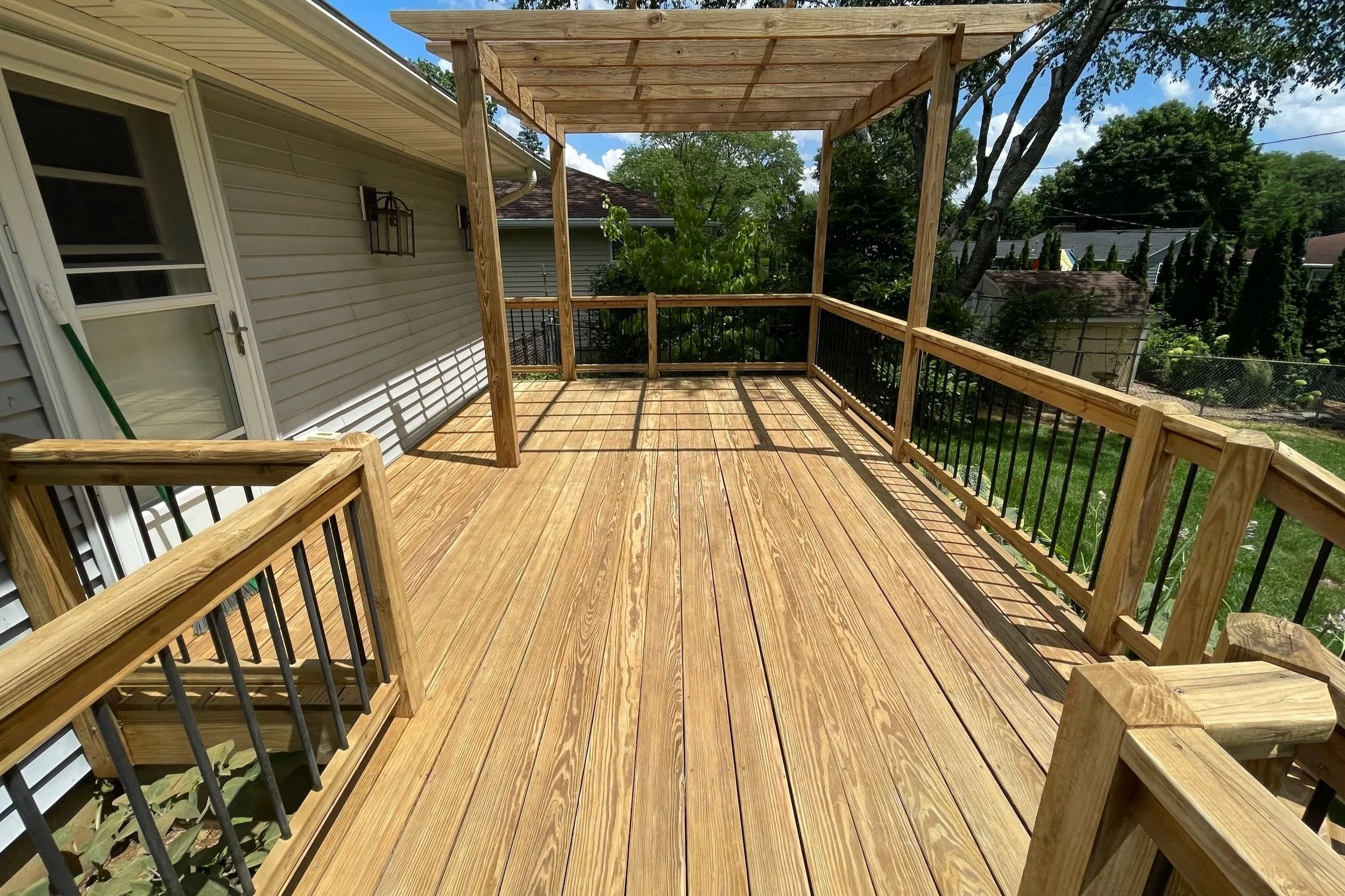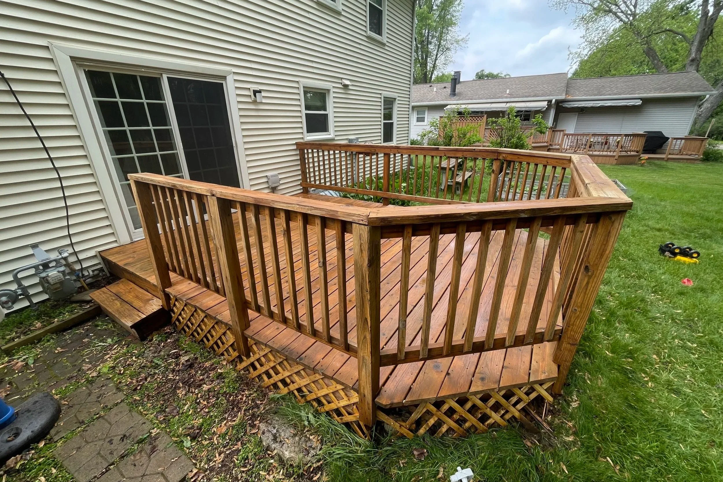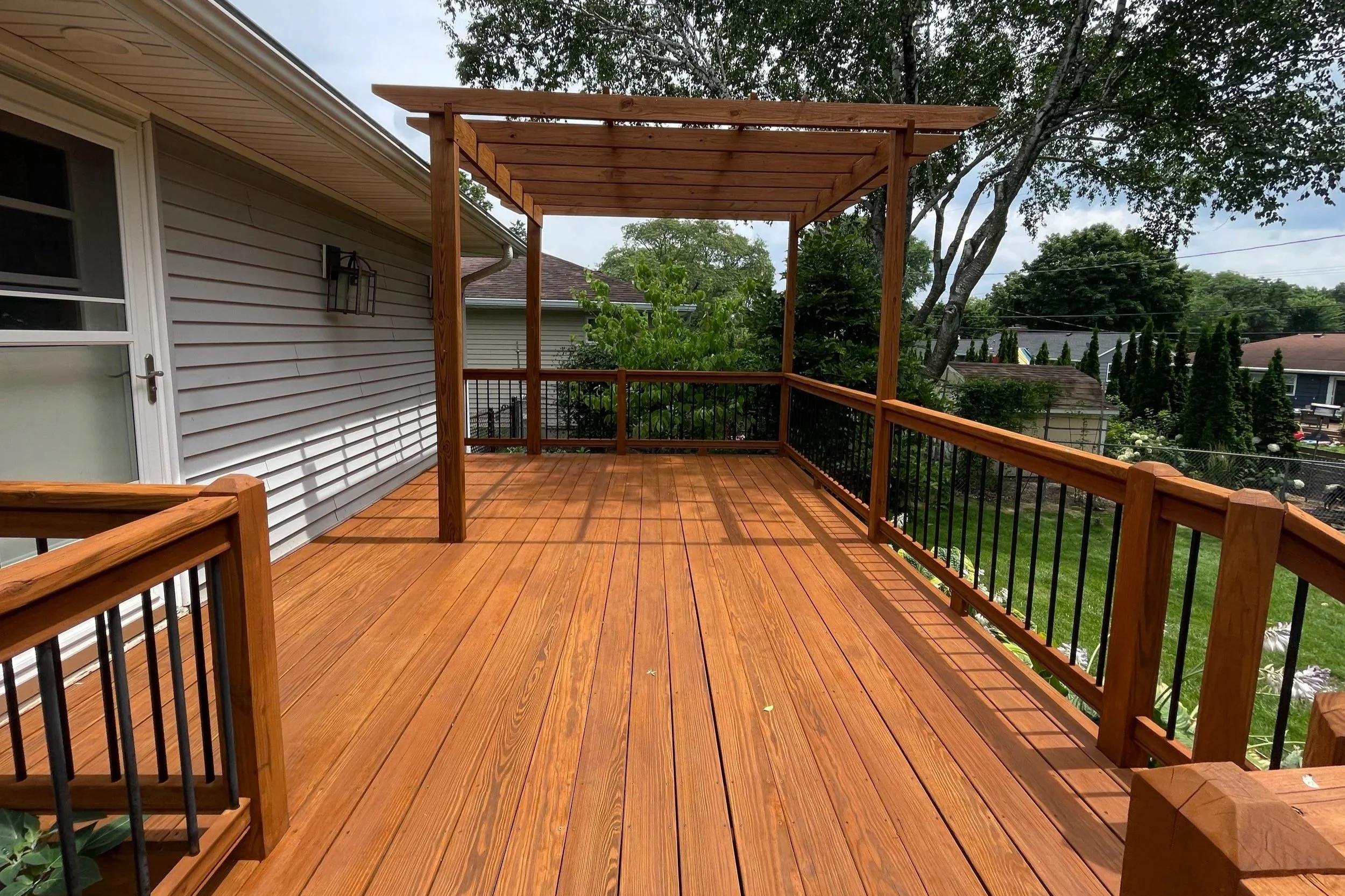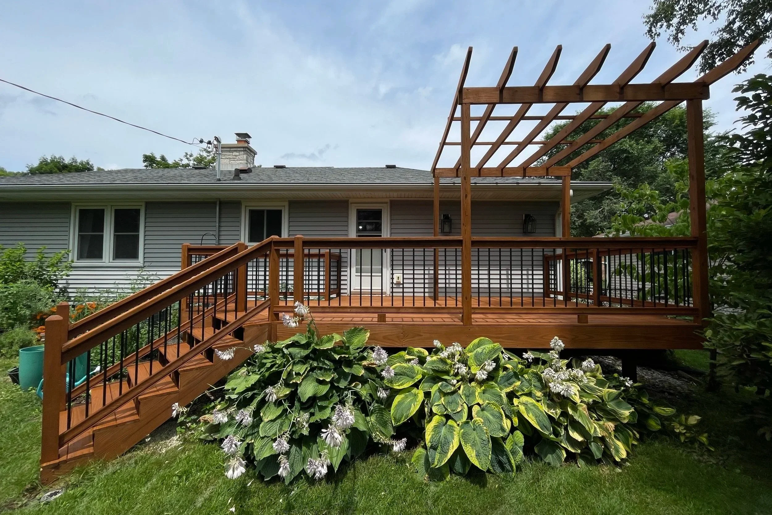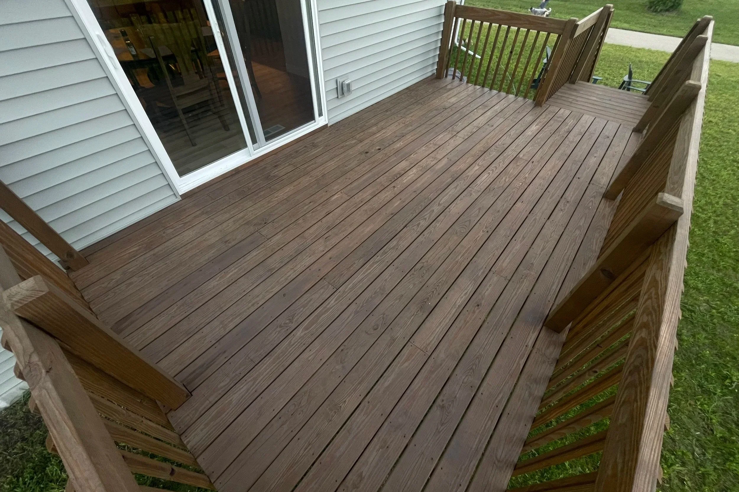 Modern Black Railings & Palomino Stain Stripped, Railings Rebuilt & Stained in Mahogany New Deck Staining — Pecan Finish Deck Stripping & Auburn Finish New Deck Staining — Barnwood Finish Washed, Stripped, and Finished in Walnut Oil Based Stripped Off W/ Palomino Stain New Deck Staining — Sequoia Finish New Deck Staining — Chocolate New Deck Staining – Chestnut Finish Full Deck Repaint in Bright White Deck Stripped & Palomino Stain Applied Deck Restoration in Pecan Finish Deck Restoration in Sable Finish Paint Stripped & Refinished in Cape Cod Grey Deck Restoration in Chestnut Finish Auburn Deck & Cedar Fence Combo Deck & Pergola In Palomino Deck Stripping & Auburn Finish Faded Deck & Palomino Stain Deck Repainted in Mercury Gray White Paint Stripped & Slate Grey Stain Solid Deck Staining — Russet Brown Stripping Peeling Paint Off Deck Solid Red Deck Stain New Deck Staining – Palomino Finish Water Based Stain Deck Stripping Front Porch Restoration – Wallnut Oil-Based Staing